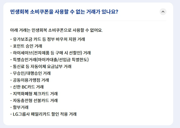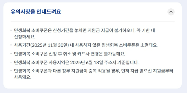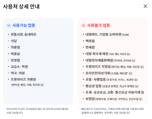 - ❌ 대형마트, 백화점, 온라인쇼핑, 유흥업소 등 사용 불가