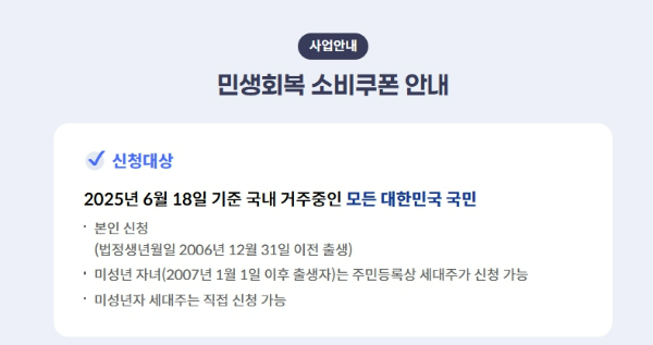 - 지급 대상: 2025년 6월 18일 기준 국내 거주 대한민국 국민
